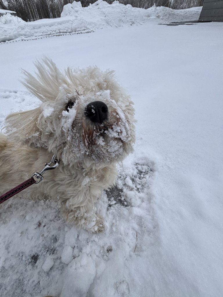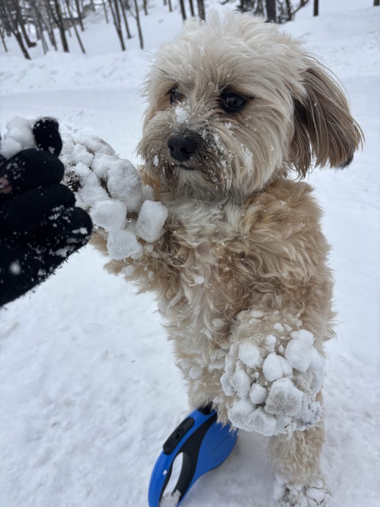マルチーズの毛質なのか雪がとっってもくっつきやすい、、、