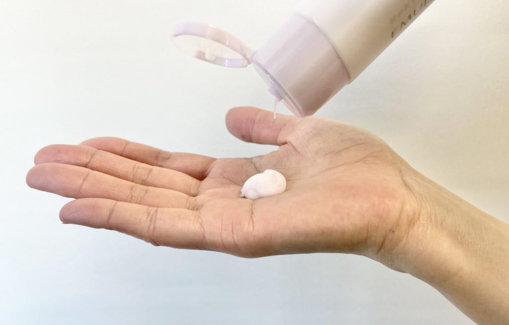 リケラエマルジョンを、500円玉大を手のひらに出して髪の毛になじませていきます。